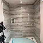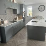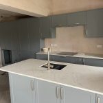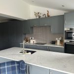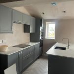 - A sleek and modern grey kitchen was installed, complete with appliances and a beautiful marble effect worktop.