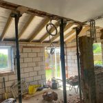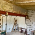 - A sturdy steel beam was expertly installed to provide structural support, and ready to open up two areas.